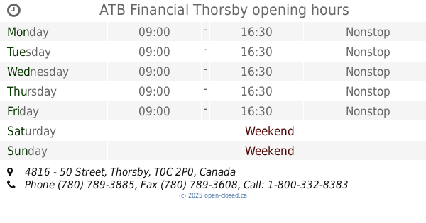 It is also possible to : Edit these OPENING HOURS of Branch ATB Financial In Thorsby, 4816 - 50 Street,